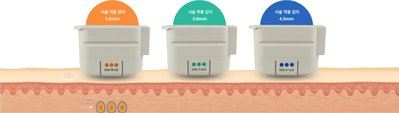 이 기술을 통해 피부 표면은 손상 없이, 1.5mm, 3mm, 4.5mm 등 표적 깊이에 있는 SMAS층에 고강도 초음파 에너지를 정확하게 집중시켜 조직을 응고시키고 수축시키는 원리로 작용합니다.